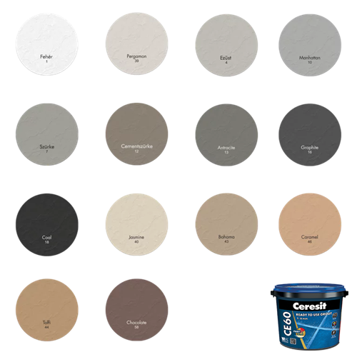 Ceresit CE 60 felhasználásra kész fugázó 39 pergamon 2 kg.